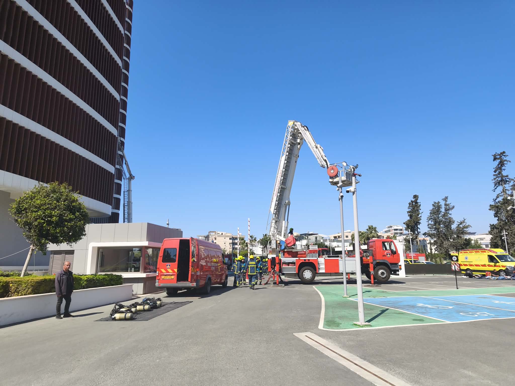 Fire services are staging a large-scale rescue and firefighting exercise at a high-rise building in Limassol today, testing their response to a major incident in a tall residential complex.